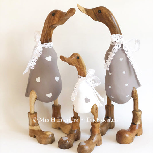 Family of Three Wooden Ducks - Decorated Wooden Duck in Boots by Mrs H the Duck Lady