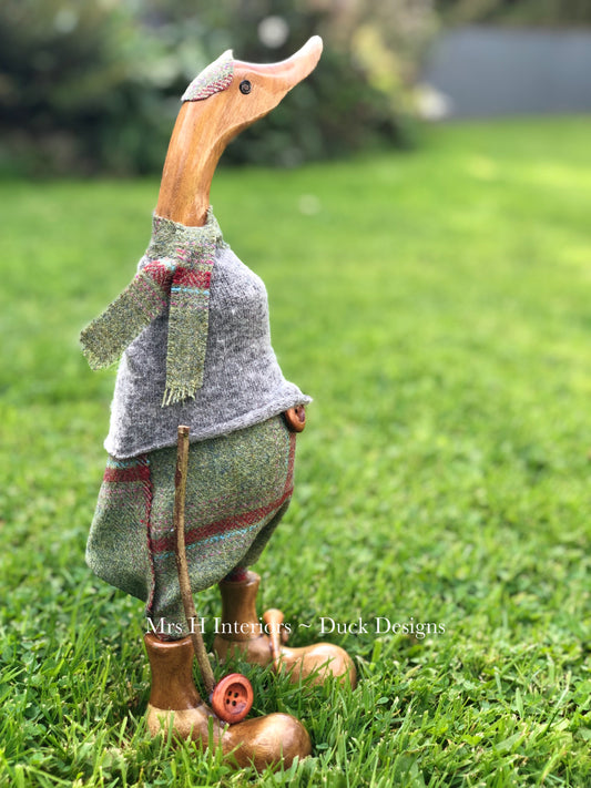 Hamish the Scottish Gent - Decorated Wooden Duck in Boots by Mrs H the Duck Lady
