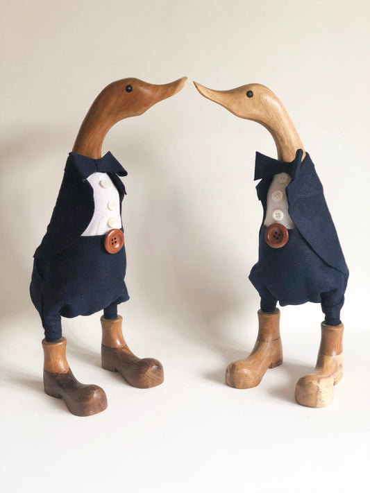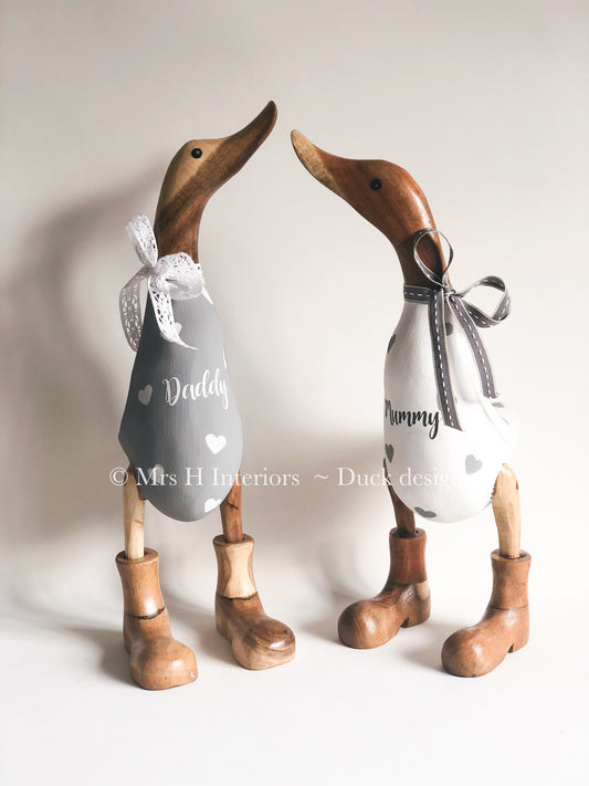 Family of Two Wooden Ducks - Decorated Wooden Duck in Boots by Mrs H the Duck Lady