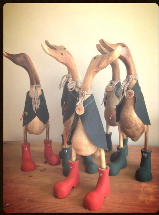Family of Four Ducks - Personalised Decorated Wooden Ducks in Boots by Mrs H the Duck Lady