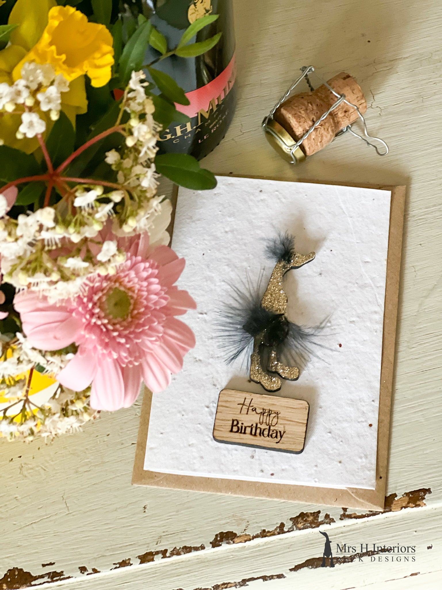 Happy Birthday Duck Tutu Card - an A6 greetings card featuring a wooden duck dressed in a fabulous tutu in your colour choice and message on an oak plaque saying 'Happy Birthday'. Handmade from wild seed paper, you can tear up and plant the back of this card, gifting flowers as well as a card.