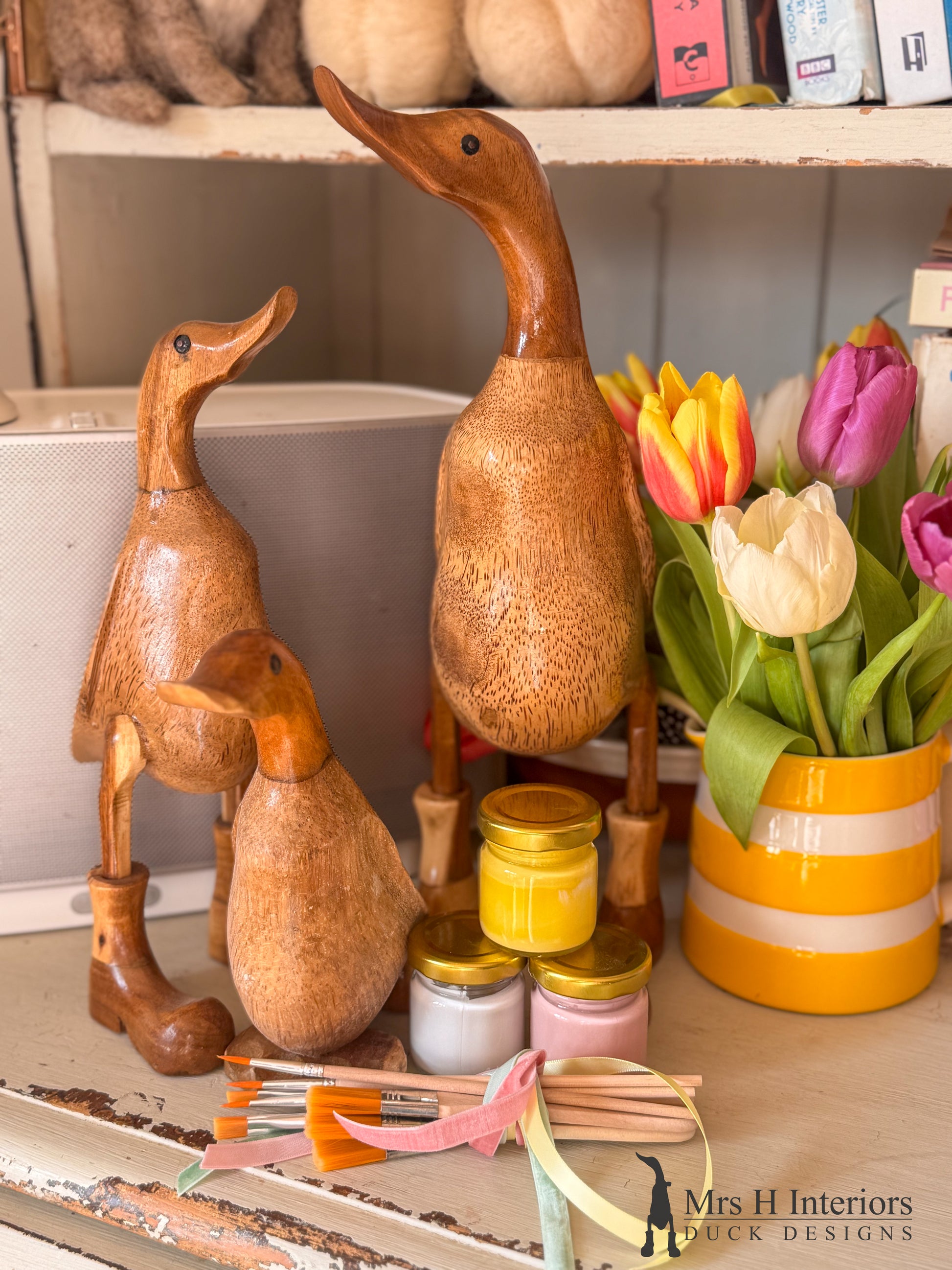 The ducks will arrive with paints, brushes and ribbon.